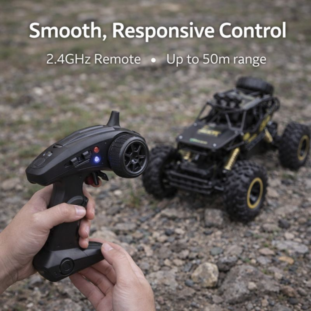 🚙 Real Off-Road Fun That Delivers: This isn’t an RC car that’s only fun on smooth floors. The 4WD Rock Crawler is built for outdoor use, handling grass, gravel, and uneven ground with ease. It feels solid, responsive, and genuinely satisfying to drive, making it the kind of toy you keep coming back to.